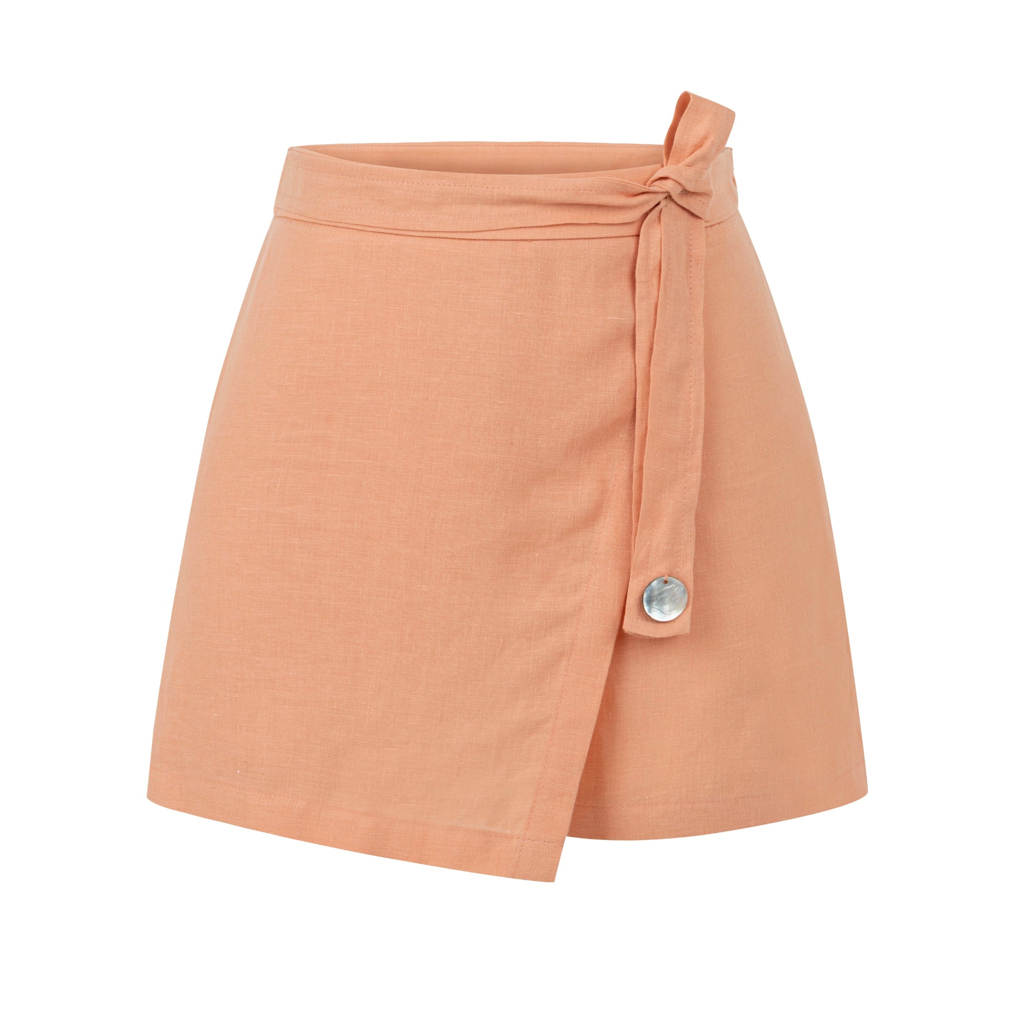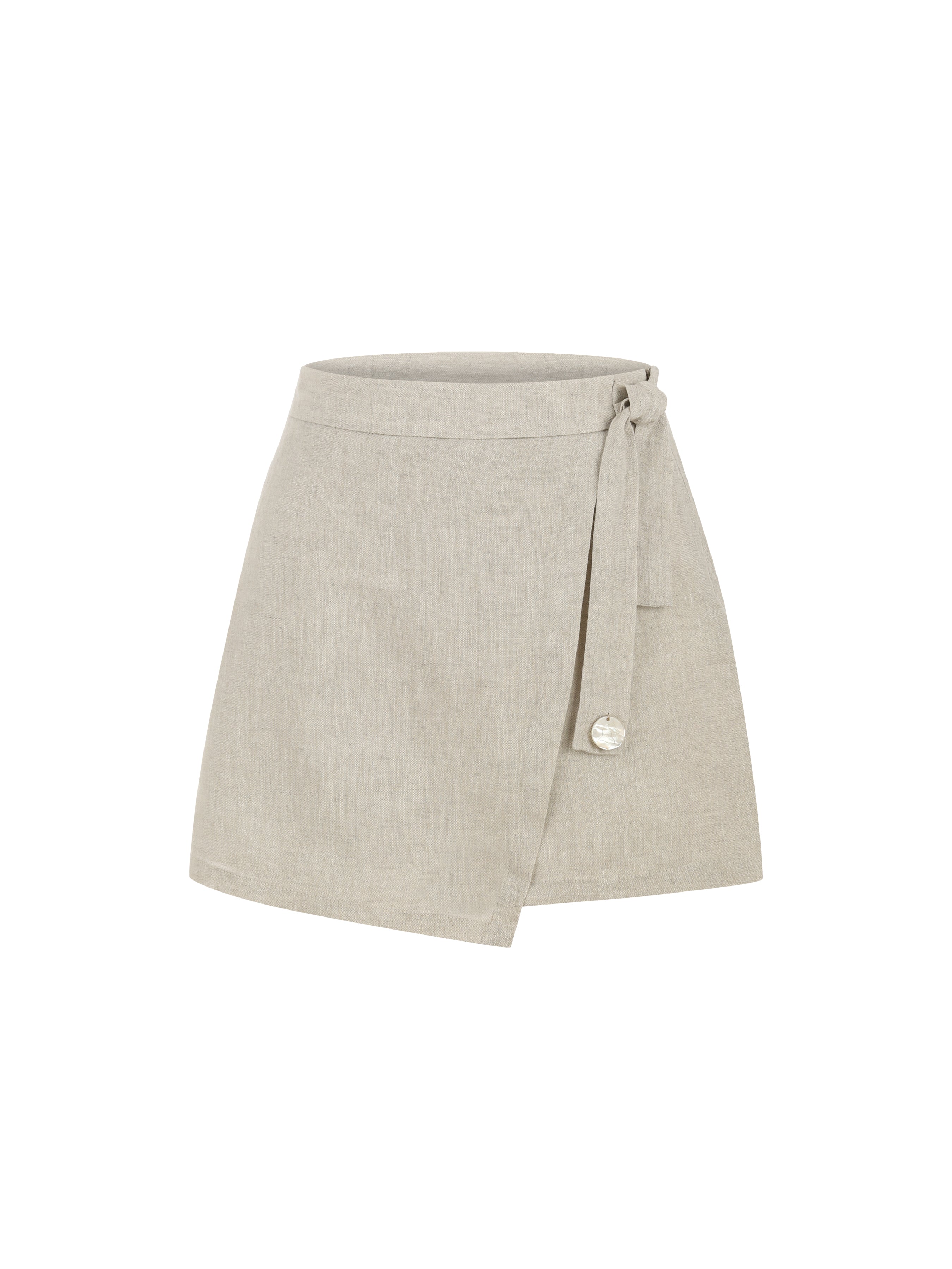 A long-standing bestseller in our collection, this signature linen skort features a wrap front, side tie, and a subtle button detail. Crafted from breathable linen with a clean, tailored finish, itโs reintroduced each season in fresh, limited-edition colors.