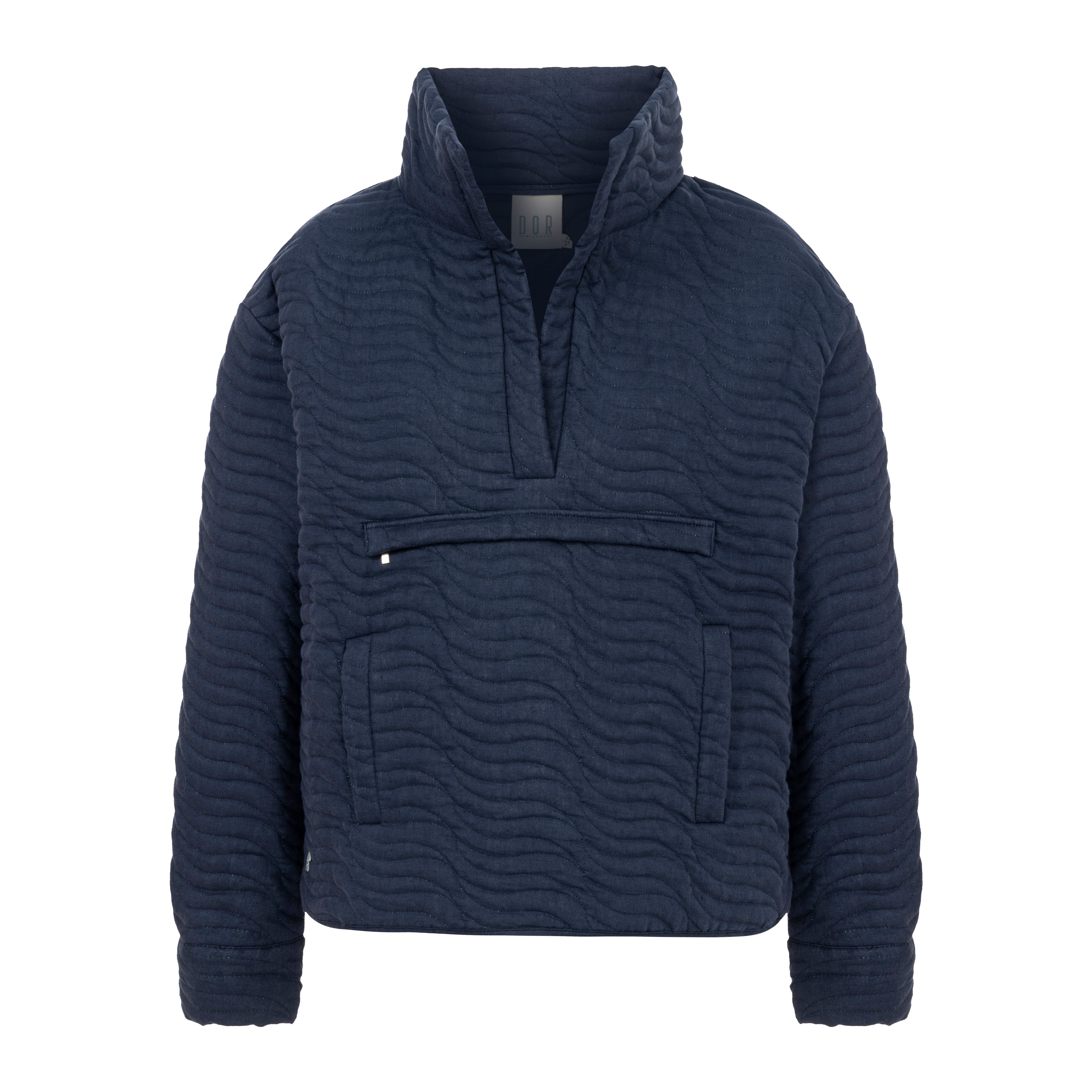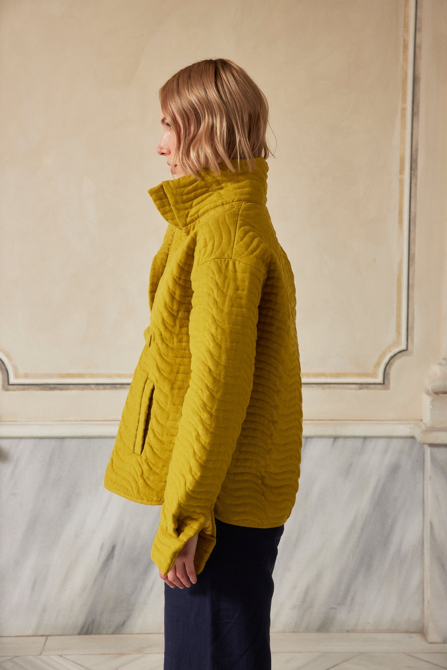 Quilted sweatshirt with zippered high collar and long sleeves.