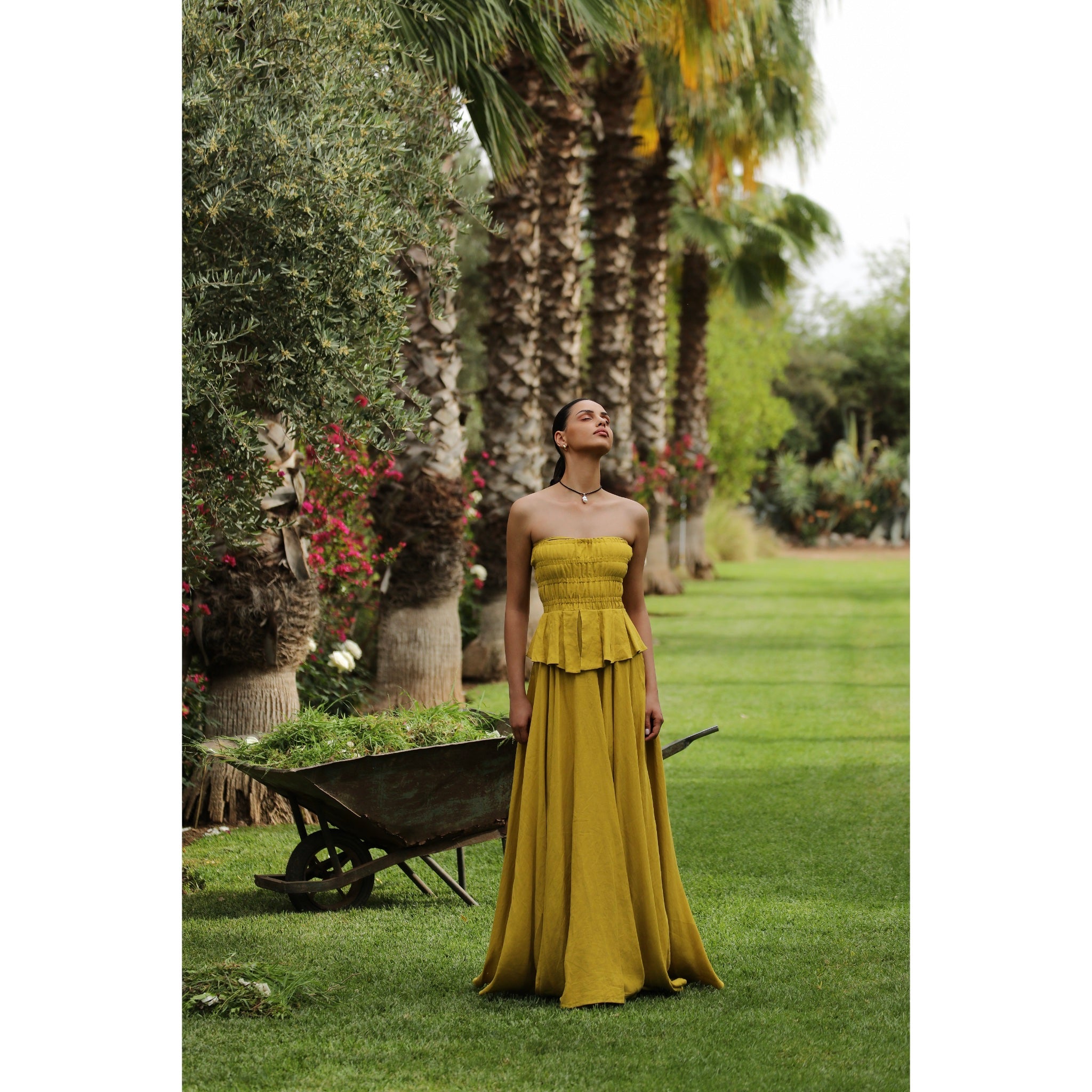 “Rooting for Tomorrow” represents a yearning for the unknown, for what is to come. A Sense of familiarity that the future holds. A step towards tomorrow as you lean on yesterday. A Journey to be grasped backward. The collection is brimming with warm tones inspired by the Mediterranean, flowy silhouettes encapsulating a romantic mood. classic pieces that exude timeless sophistication and more.