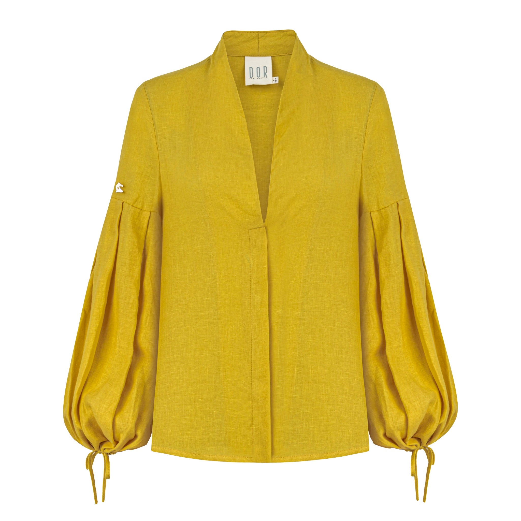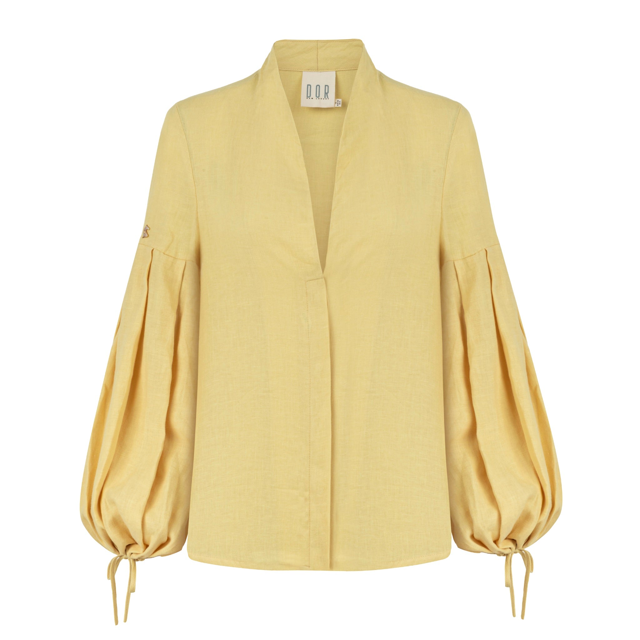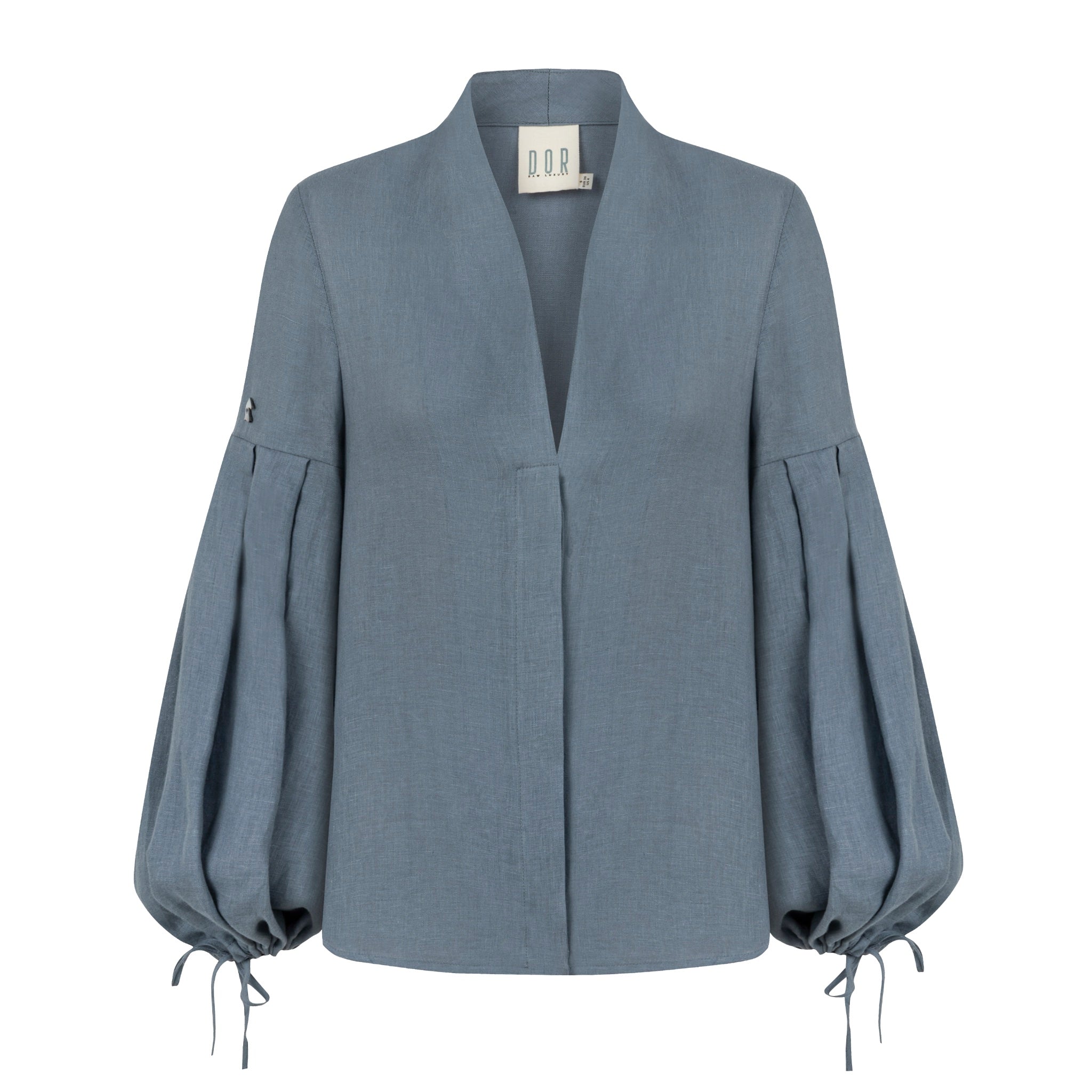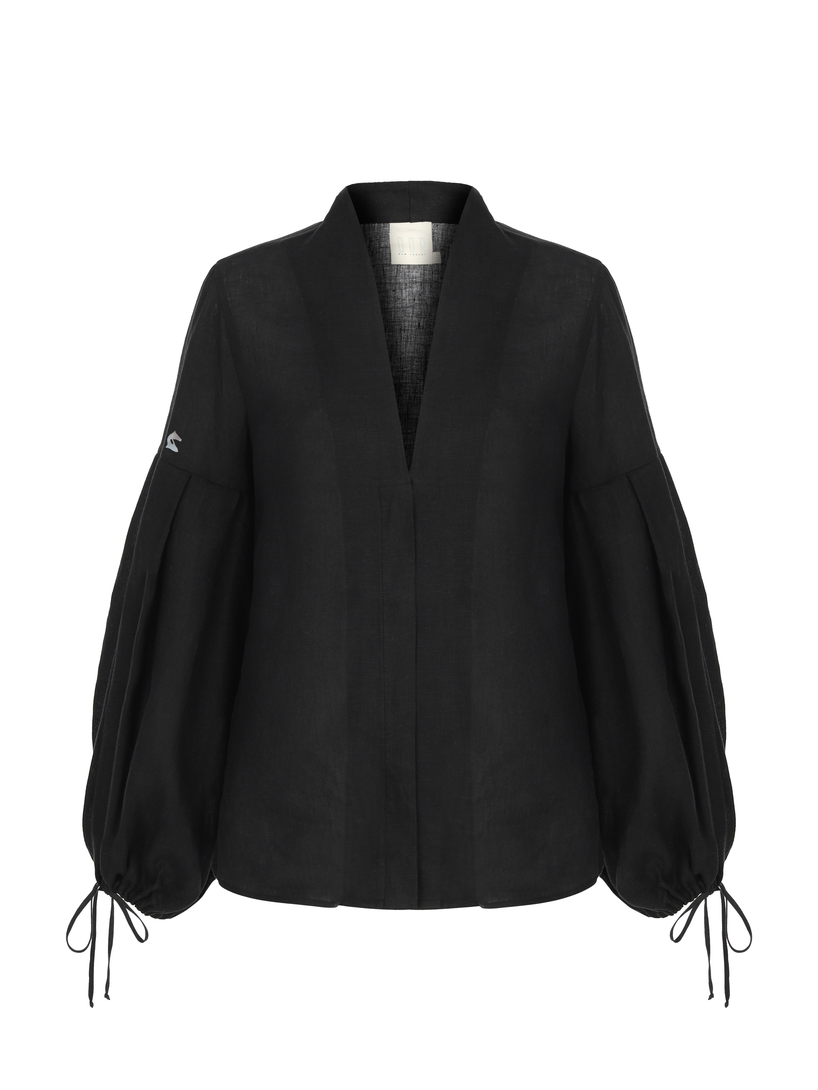 Crafted from lightweight linen, the Present Shirt features a clean, collarless neckline and voluminous pleated sleeves gathered with adjustable ties. A minimalist silhouette elevated by thoughtful detailing and natural texture.