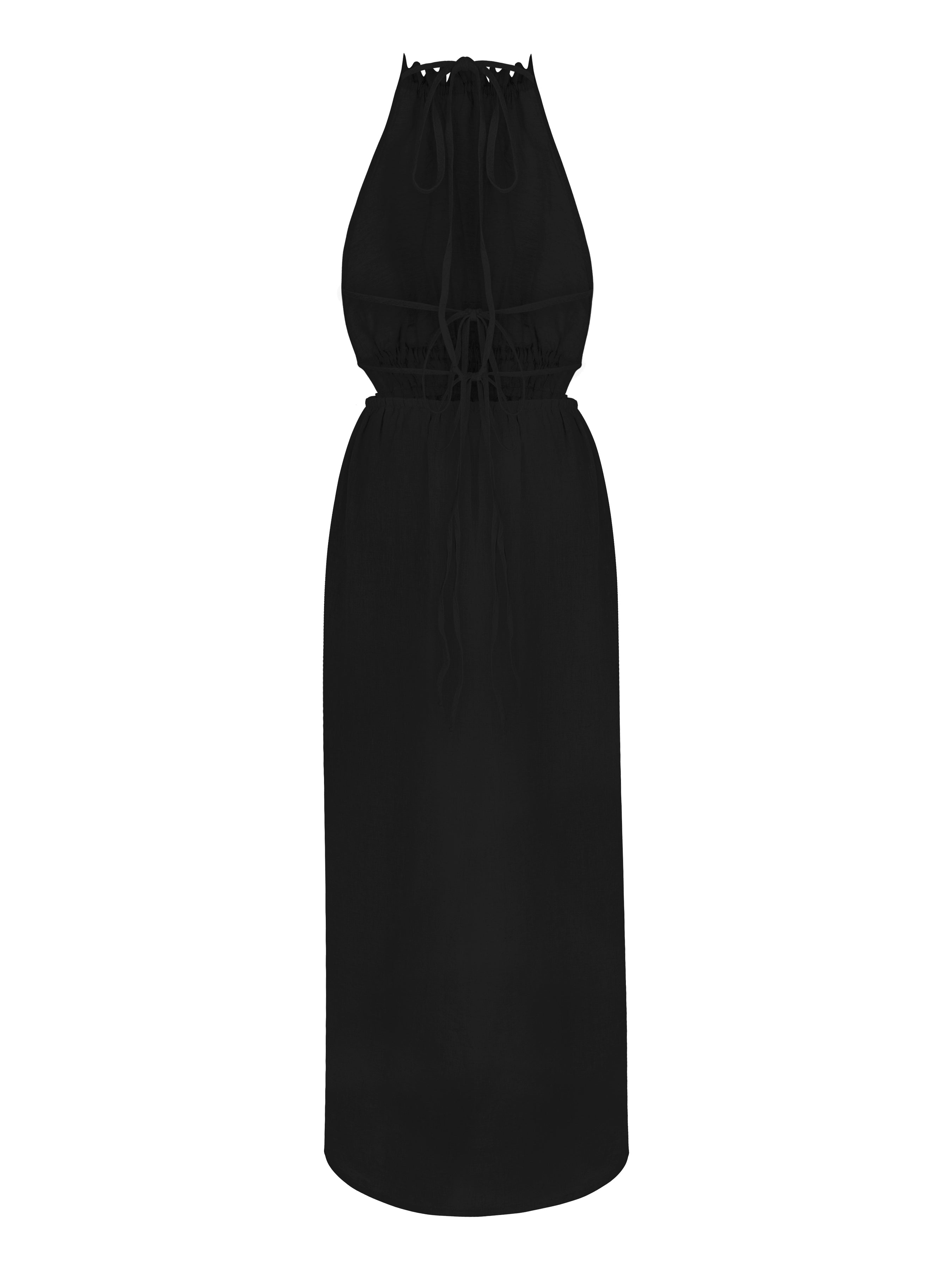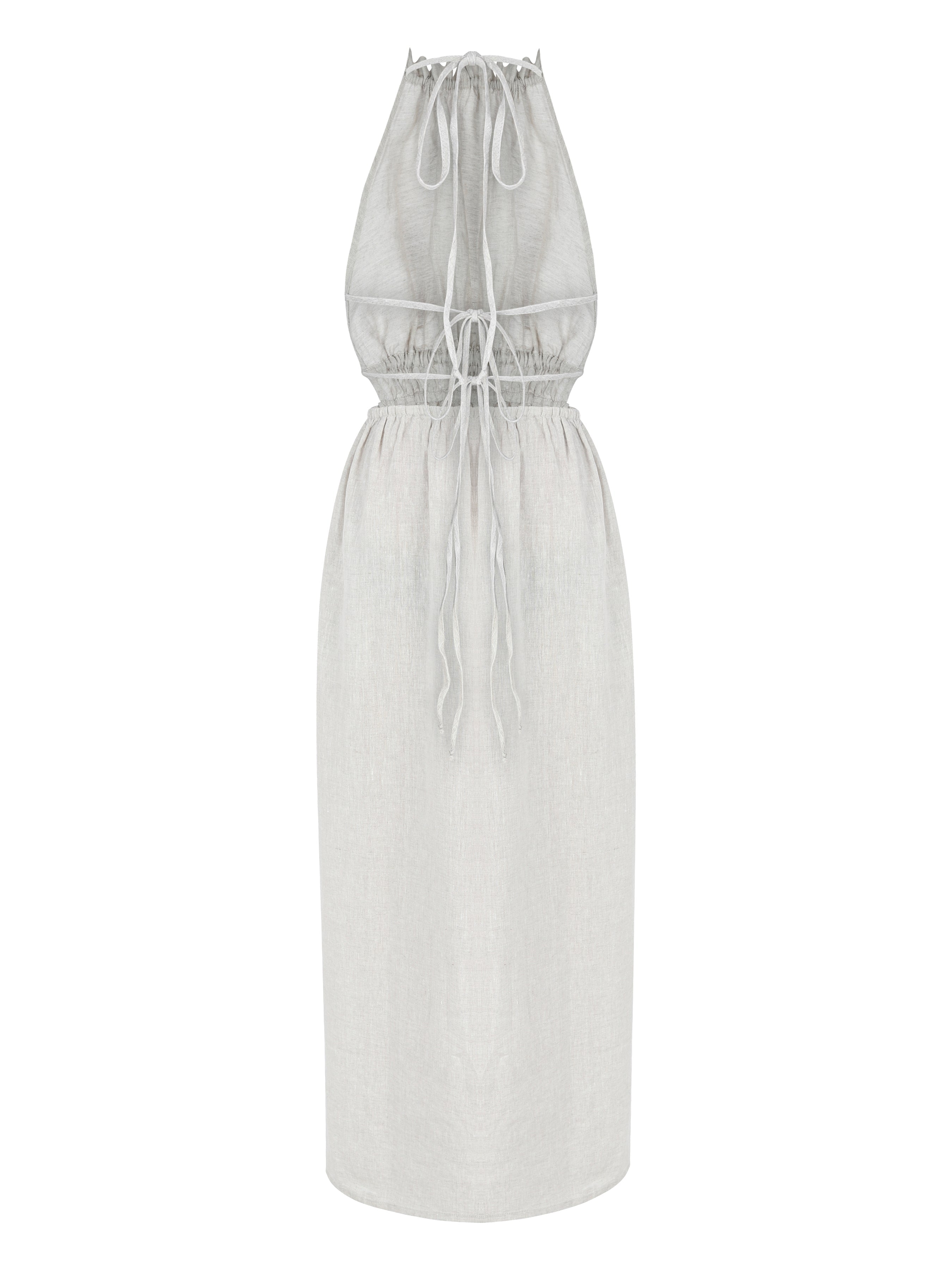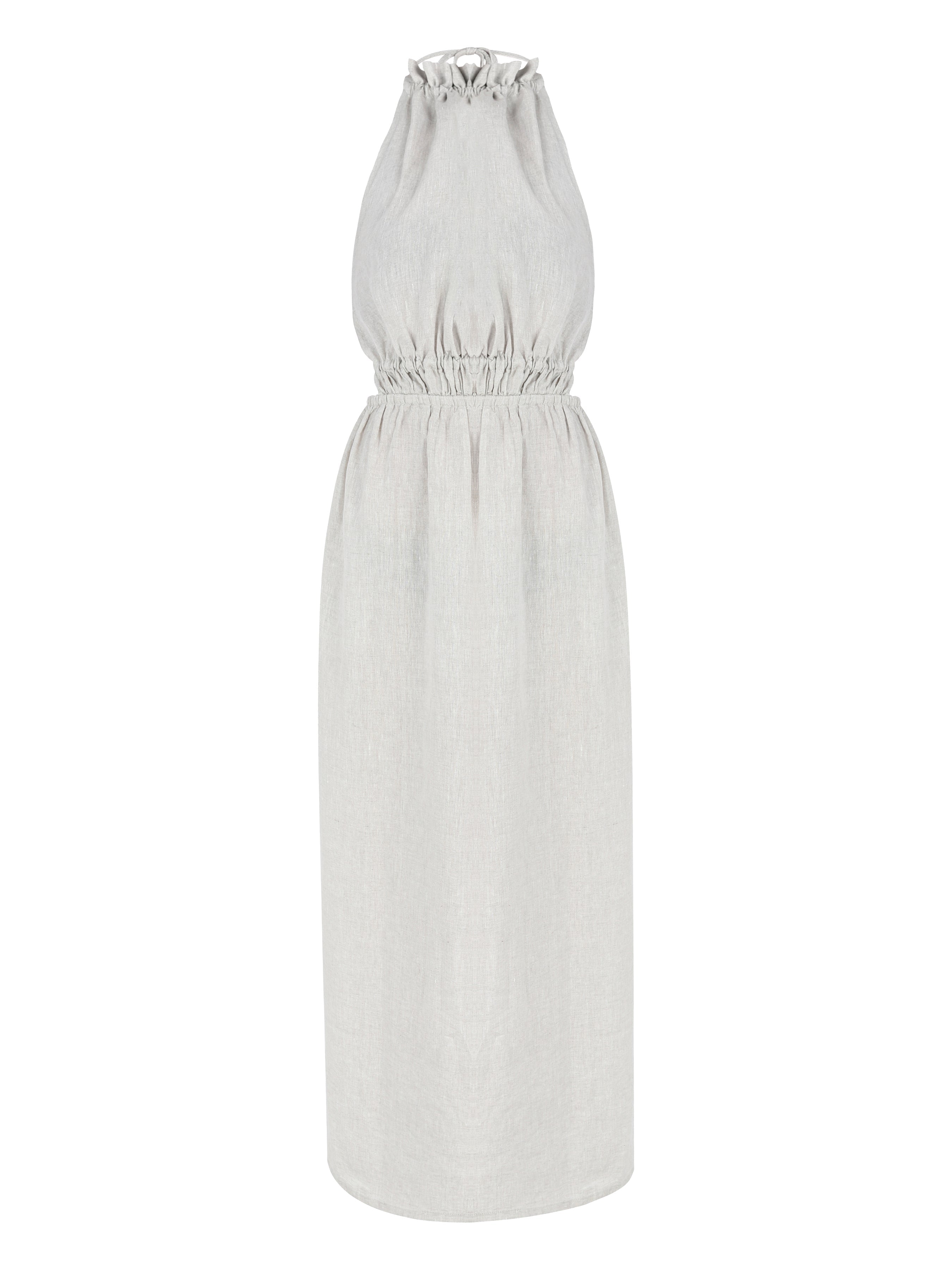 Halter neck, back strap dress.