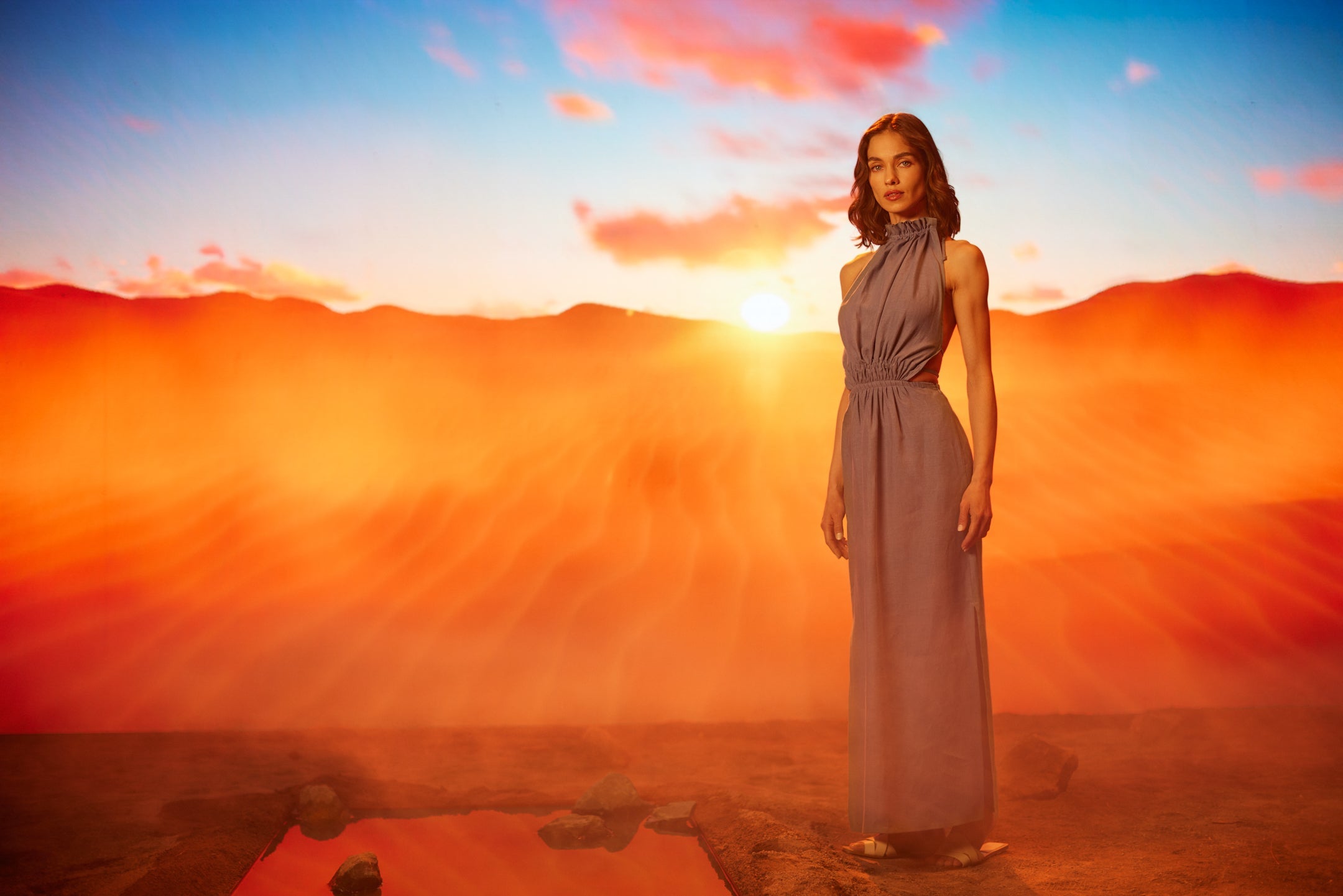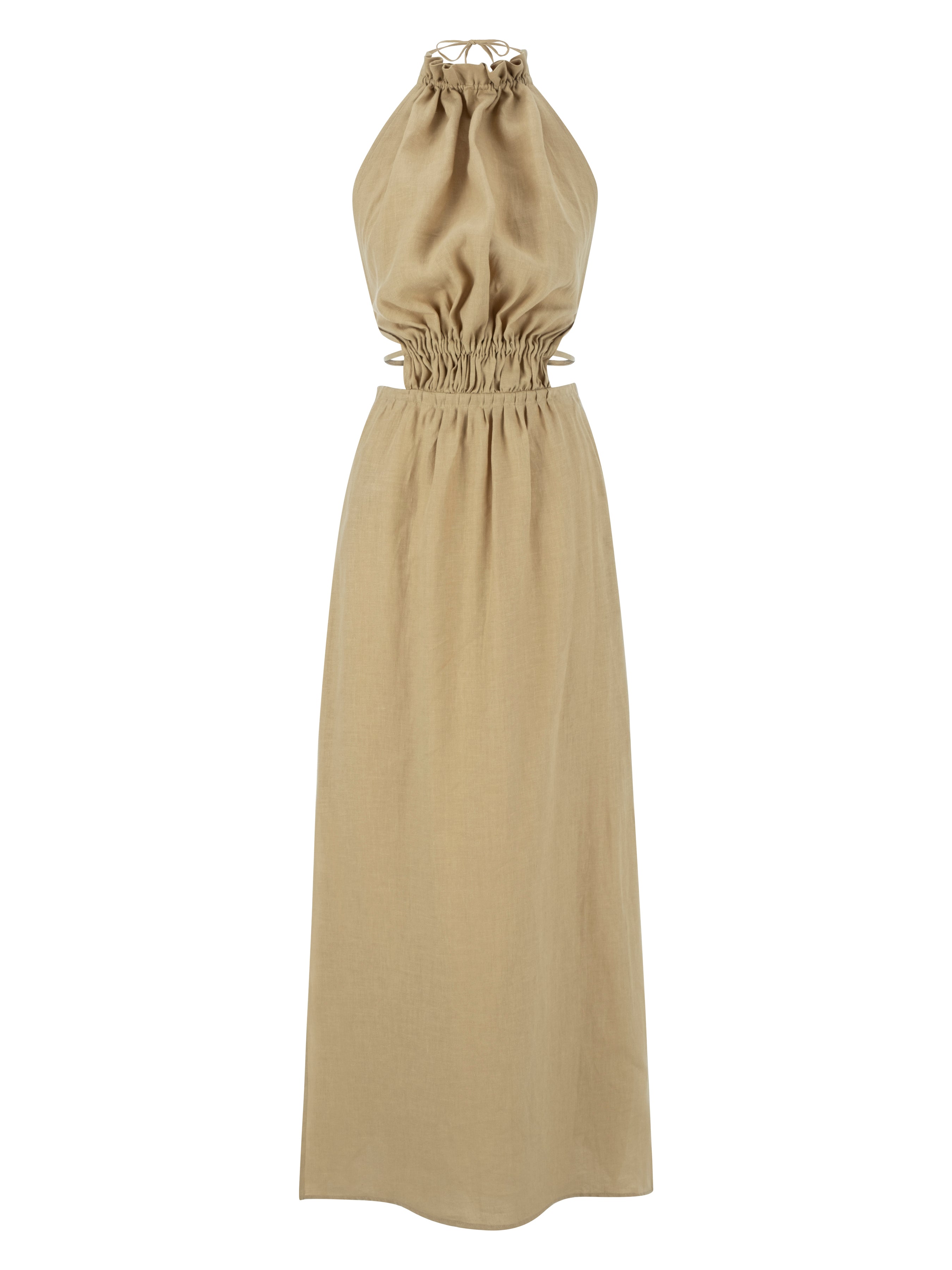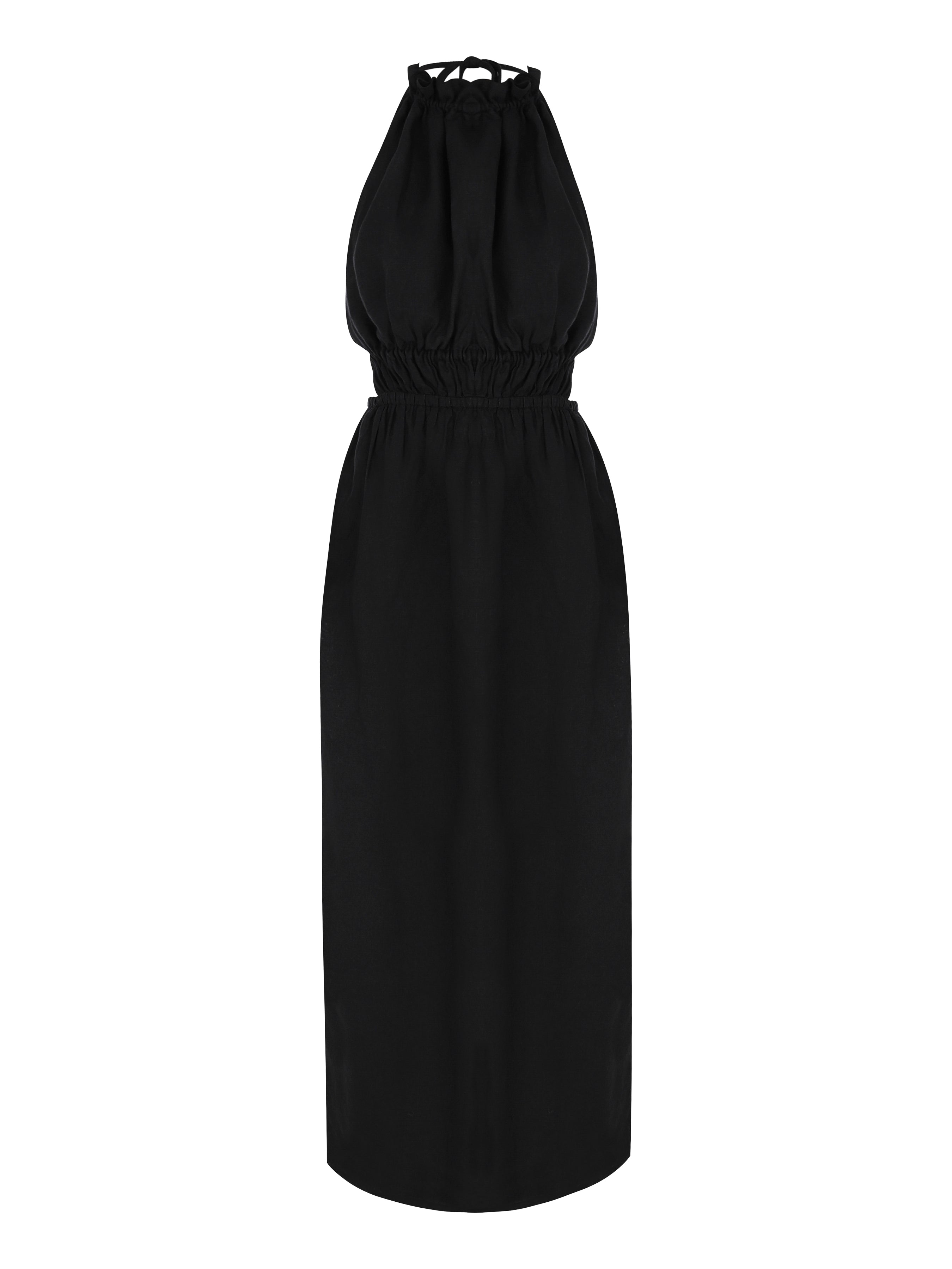 Halter neck, back strap dress.